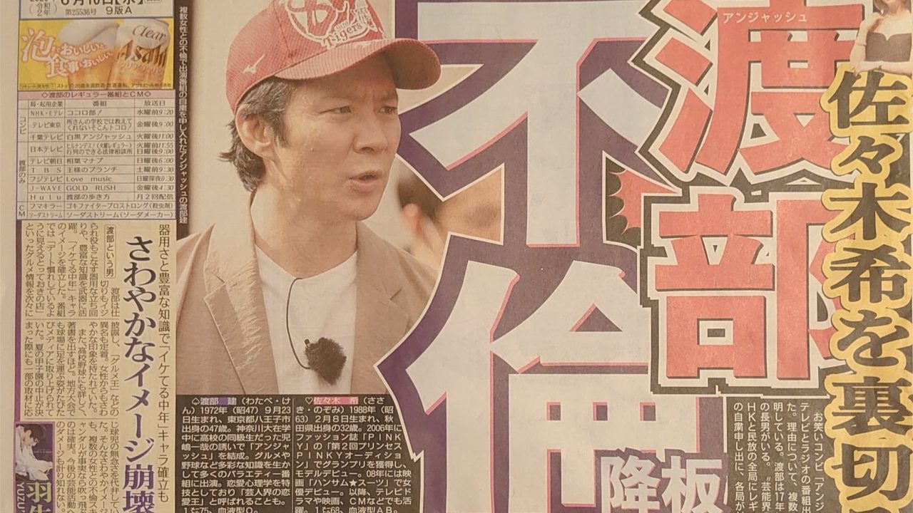 アンジャッシュ渡部建の女優不倫スキャンダルについて