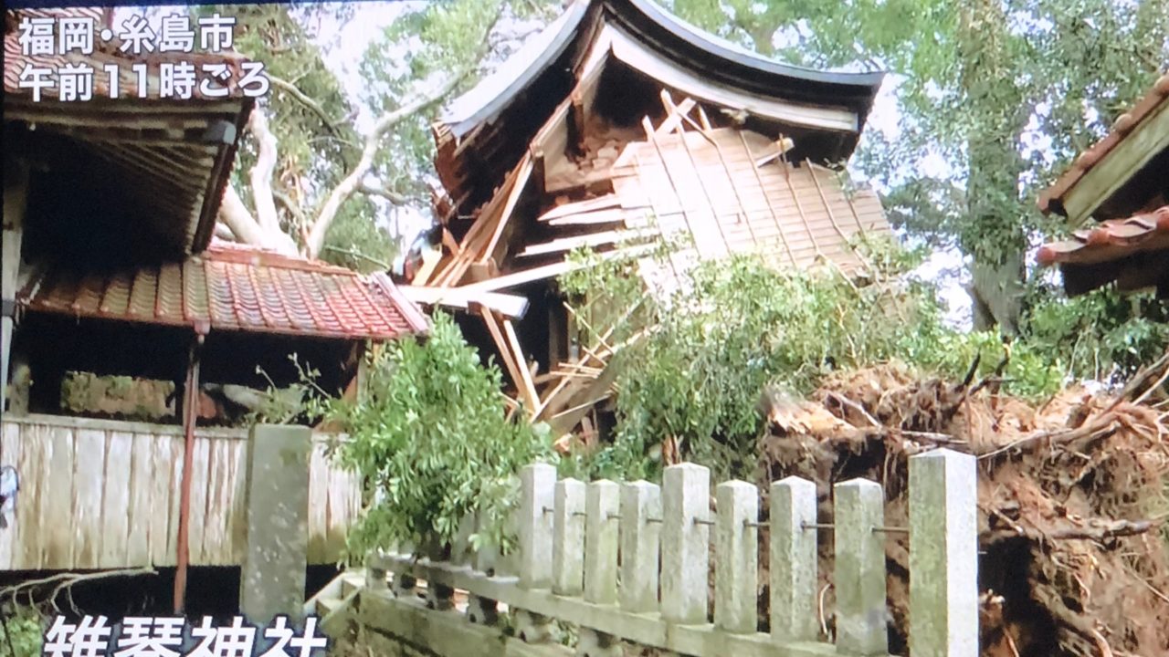 台風10号福岡県糸島市雉琴神社の被害状況(画像)