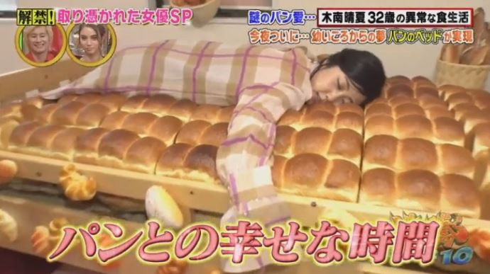 その夢は大人になってからも変わらなかったのですが、ある番組内でスタッフがたくさんの本物のパンが敷き詰まった大きなベッドを作り木南晴夏はその夢が叶ったのです!