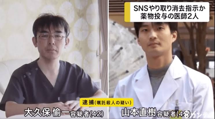 山本直樹は泌尿器科医、大久保愉一は呼吸器内科医で、ALS事件の時はツイッターで知り合った京都市中京区のALS患者の女性から依頼を受けた為、2人でマンションまで行って急性薬物中毒で死亡させました。